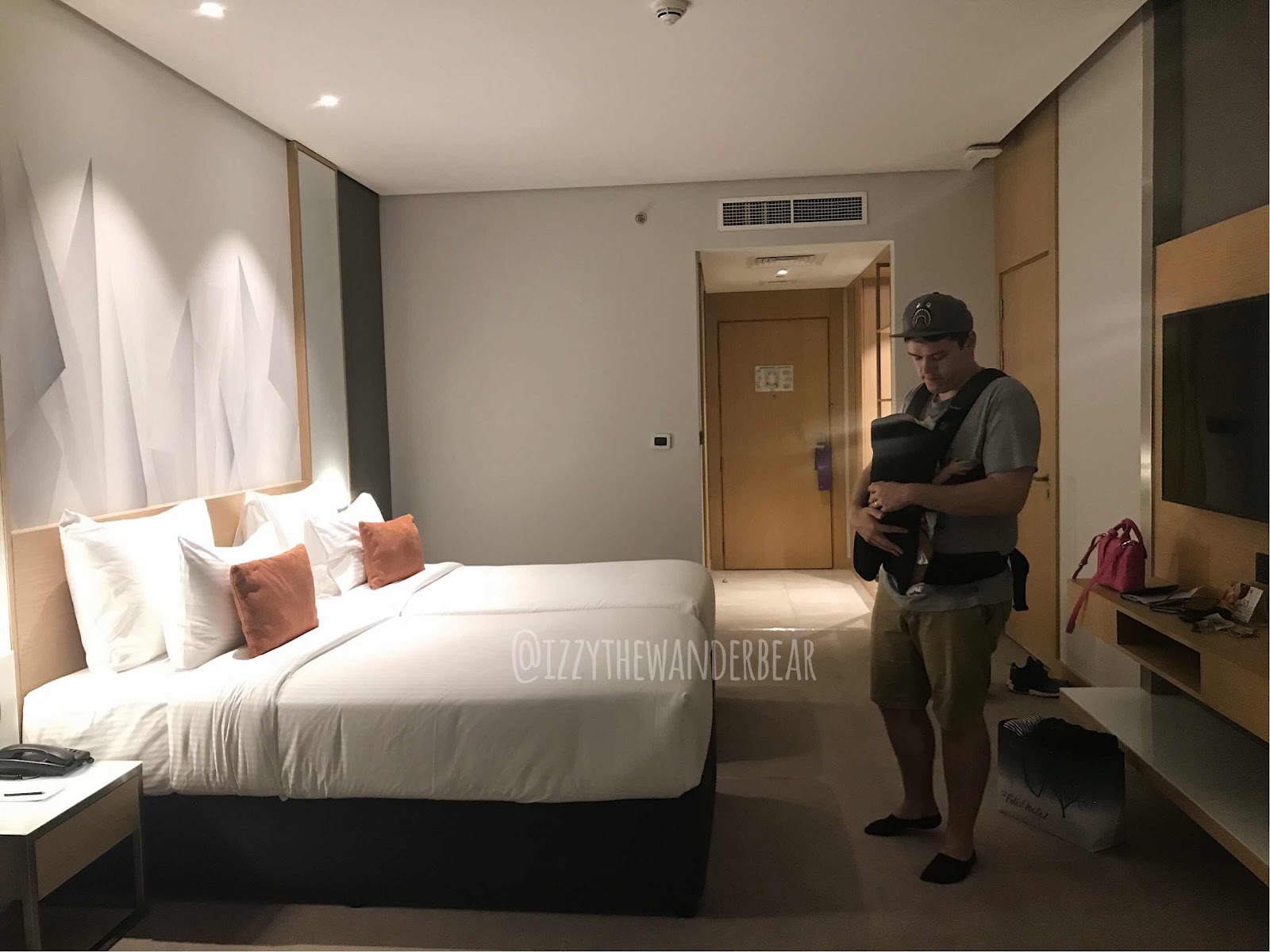 Daddy Bear datang dengan ide mengapa saya tidak berbagi kamar hotel kami ketika kami bepergian ke Dubai selama 1 malam. Mengingat itu adalah hotel bintang 4 juga. Setidaknya memenuhi kriteria ulasan hotel saya. Saya seperti “oh yeah, kenapa tidak!?”.
